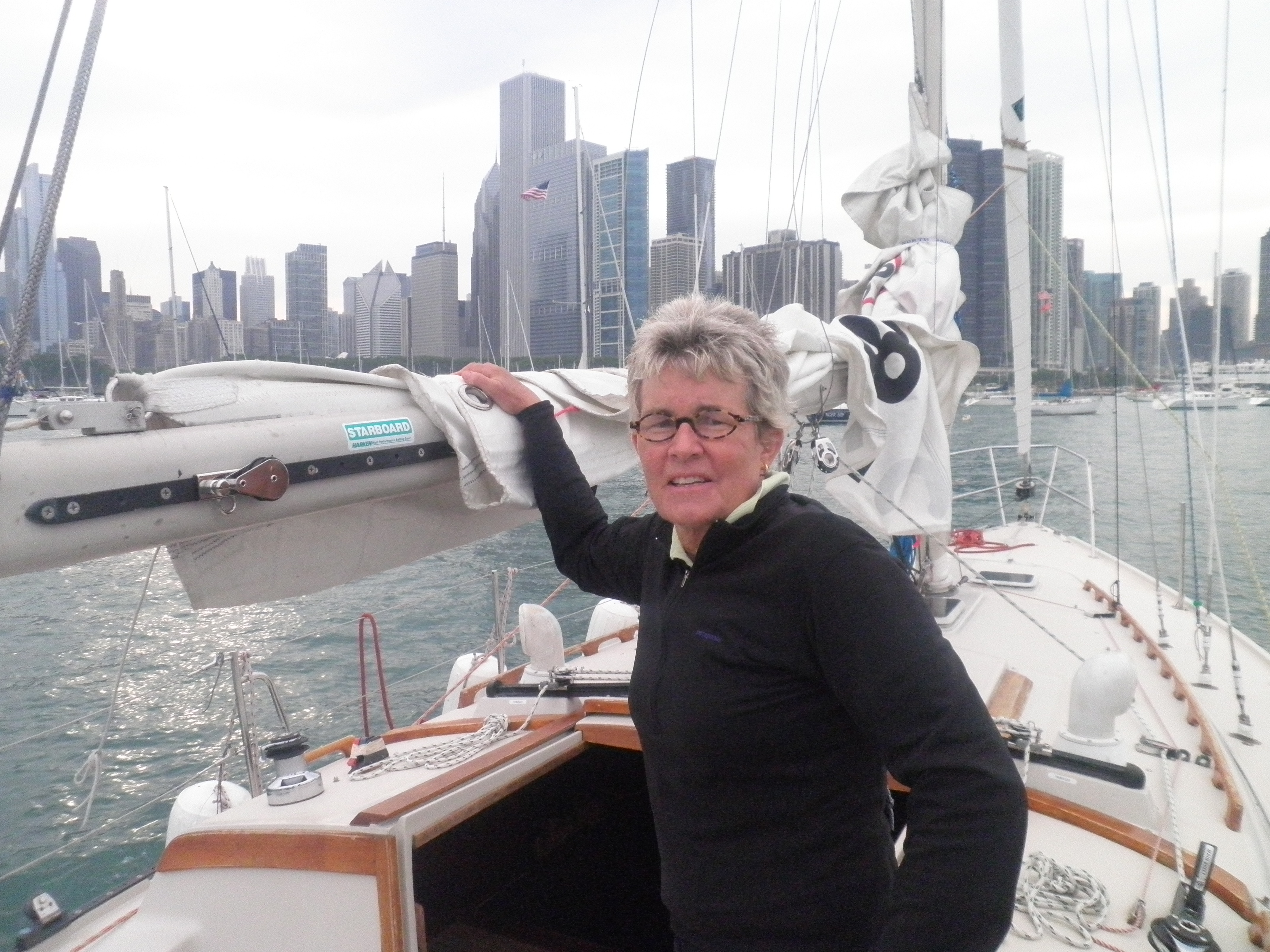 It was incredible. We were sailing downwind in a light breeze, so it was silent at first. All one could do was stare. Time passed, we continued toward the marina at Monroe and Lake Shore Drive. The air cleared a bit and the sounds of water lapping at hulls and unladen halyards woke us up. Sun burned and we soon saw more clearly the iconic rectilinearity, strangely yet bereft of the usual downtown din.
